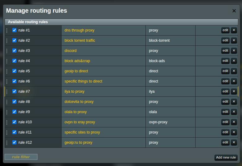 При настройке маршрутизации в xrayui следуйте этому дереву решений: