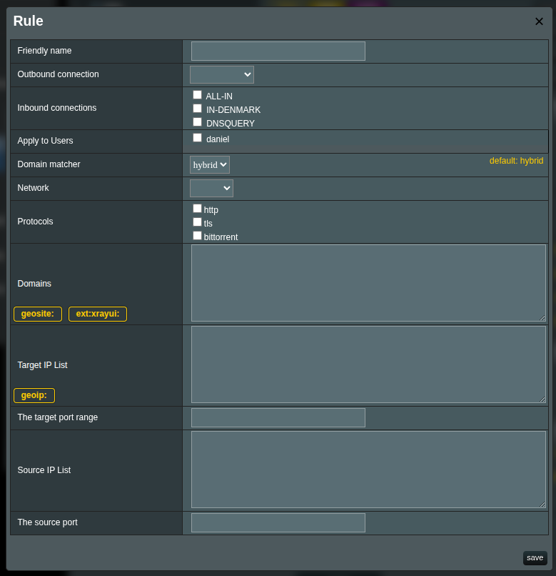 Вы можете создавать свои собственные списки доменов, используя функцию пользовательского geosite в xrayui: Подробнее читайте о пользовательских файлах geosite dat.
