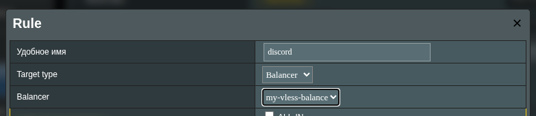 Использование балансировщиков в правилах